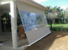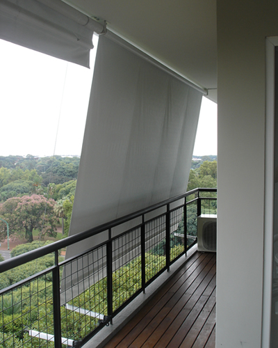 Toldos ideales para terrazas o galerías, de caída vertical que caen por propio peso con accionamiento manual o motorizado.